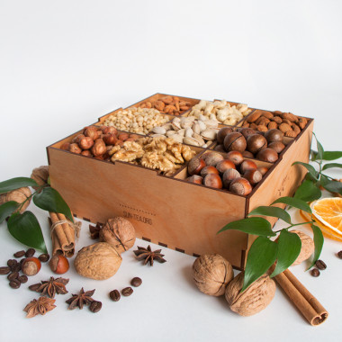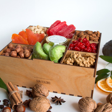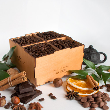 Если у вас нет времени придумывать, как и чем наполнить наборы, ознакомьтесь с нашими вариантами. Вы можете выбрать объем бокса на 4, 9 или 16 позиций, а так же наполнить их кофе, чаем, орехами и сухофруктами.